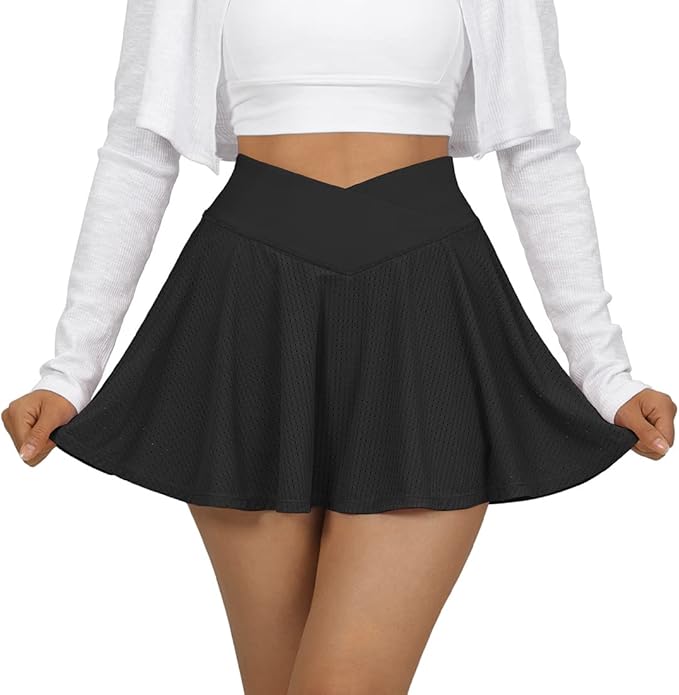 Womens Pleated Tennis Skirt Crossover High Waisted Mesh Golf Skorts