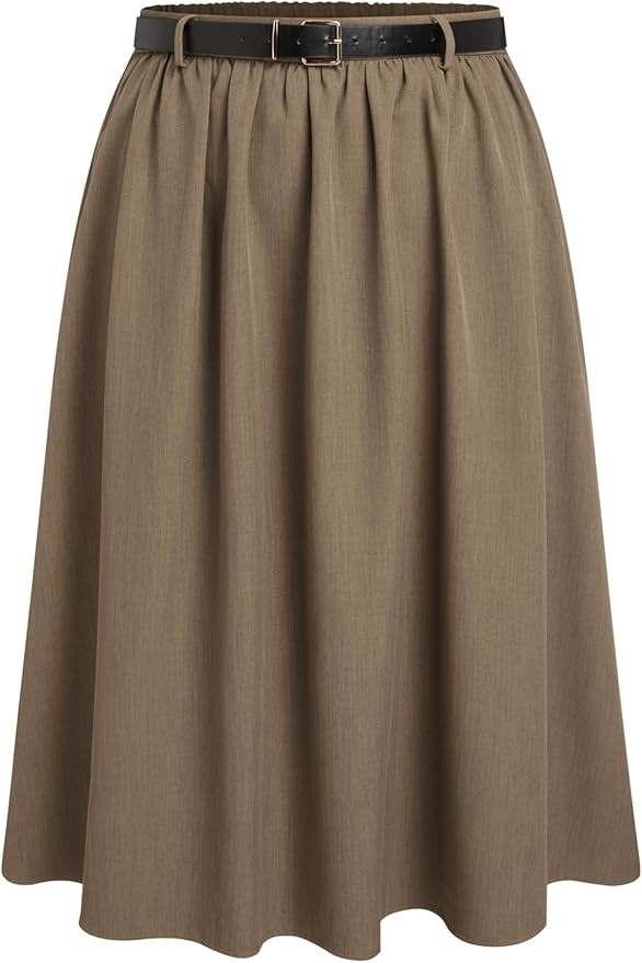 Mid Waist Skirts for Women Pleated A-Line Long Maxi Skirt Plus Size with Belts 2024 Trendy