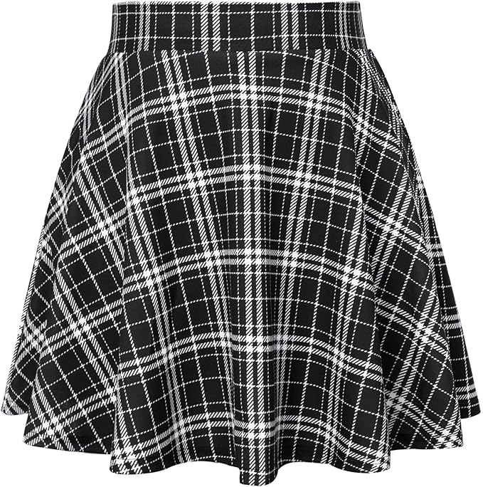 Women's Casual Plaid High Waist Pleated A-Line Uniform Mini Skirt