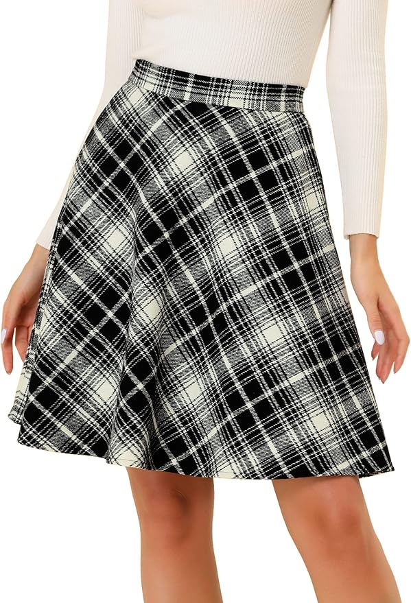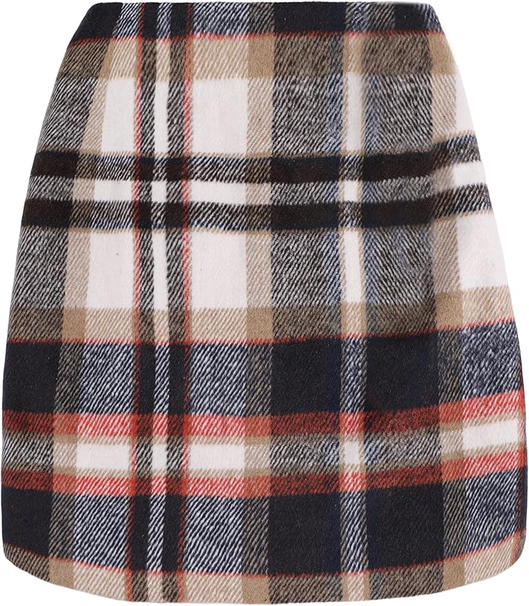Women's Plaid Mini Skirt High Waist Bodycon Wool A Line Fall Pencil Skirts