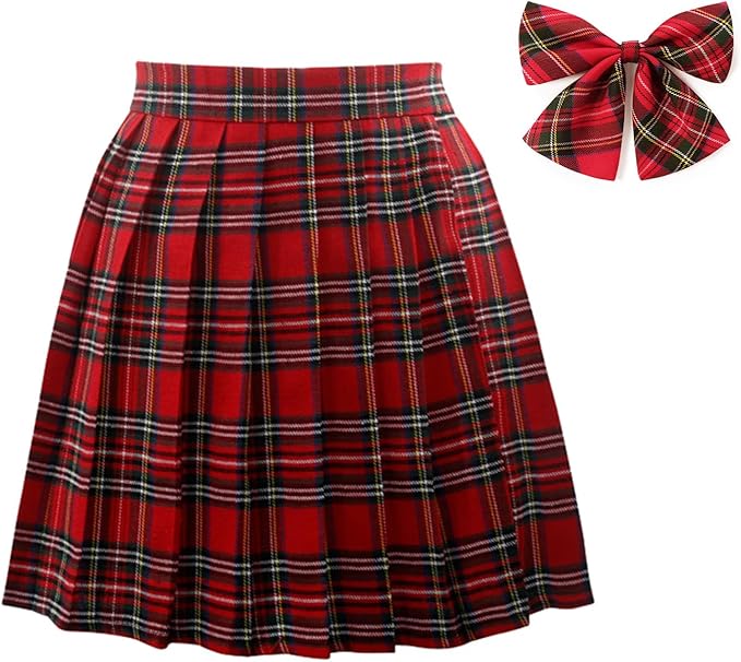 Women's Plaid Pleated Skirt High Waisted Japanese JK School Uniform A-line Skirt with Ties