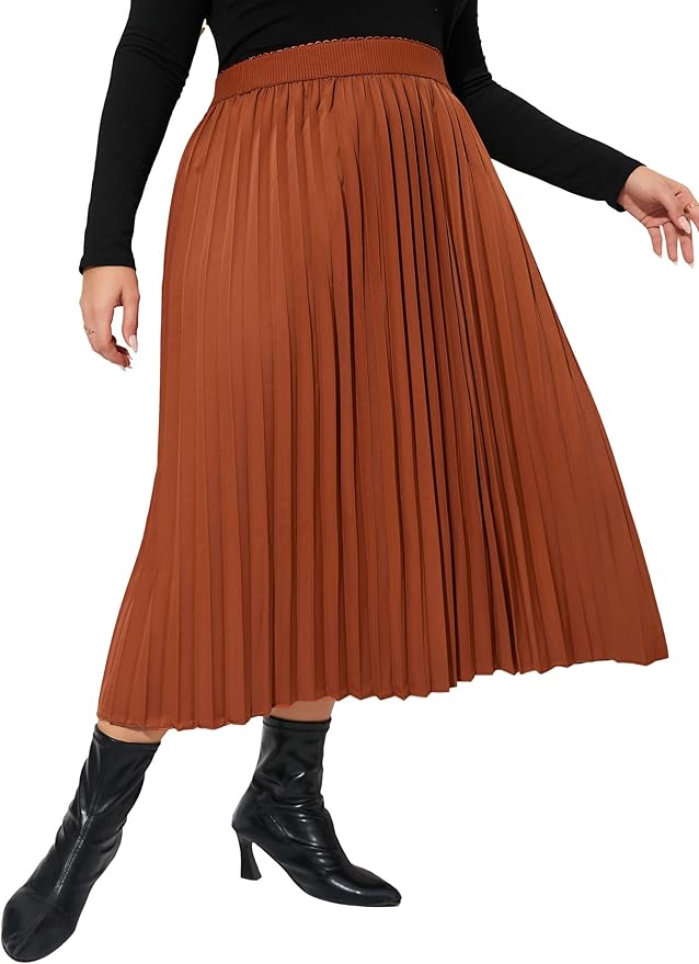 Plus Size Pleated Skirt Women's Plus Size Skirt Elastic Waist Boho Skirts Plus Size Midi Skirts for Curvy Women