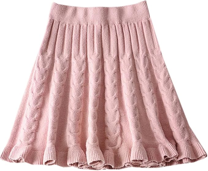 Women's Cute Stretchy Knit Short Pleated Solid Sweater Skirt